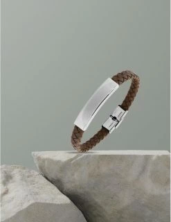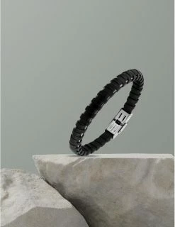 CARGO Bracelet Acier Cuir Tressé Fermoir Dentelé