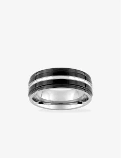 Bague 3 bandes d’acier et laque noire, finition brillante, largeur 8mm,