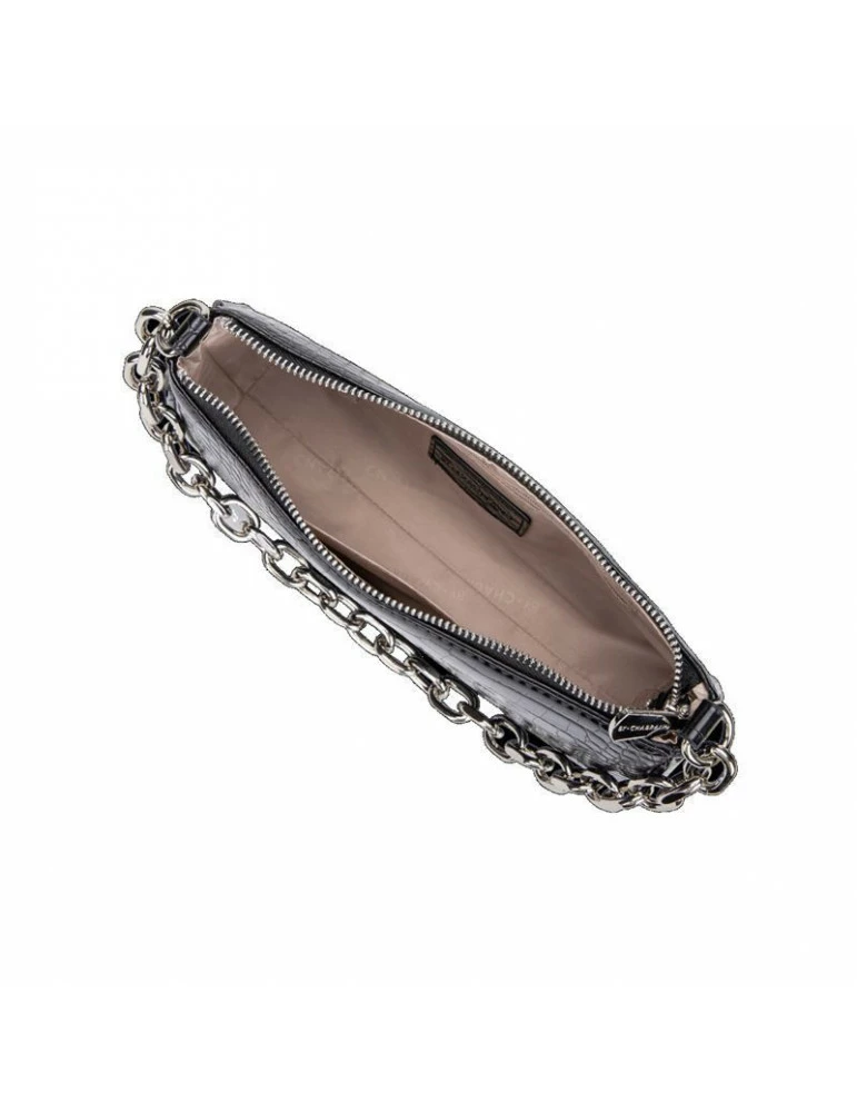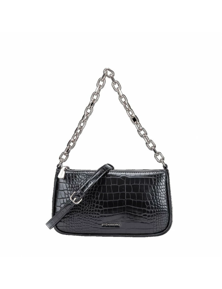 Sac porté épaule synthétique noir imprimé croco. Equipé d’une anse chainette pour porté épaule, une bandoulière amovible pour porté travers, d’un compartiment principal zippé et à l’interieur une poche plaquée.