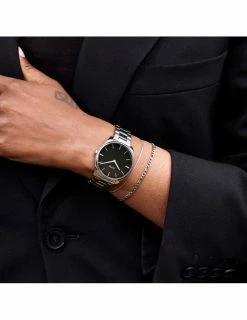 Coffret de deux bracelets en acier, l’un maille figaro et l’autre une chaîne fine pour un look tendance. Coffret idéal à cumuler avec une montre pour un effet soigné et sophistiqué. Taille ajustable facilement à l’aide d’anneaux intermédiaires de 16,5 à 19,5cm.