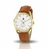 Une des rares automatique carrée du marché dans cette gamme de prix. Lunette acier doré-rose, mouvement visible par la vitre avant, cuir noir façon croco, boîte 42mm.