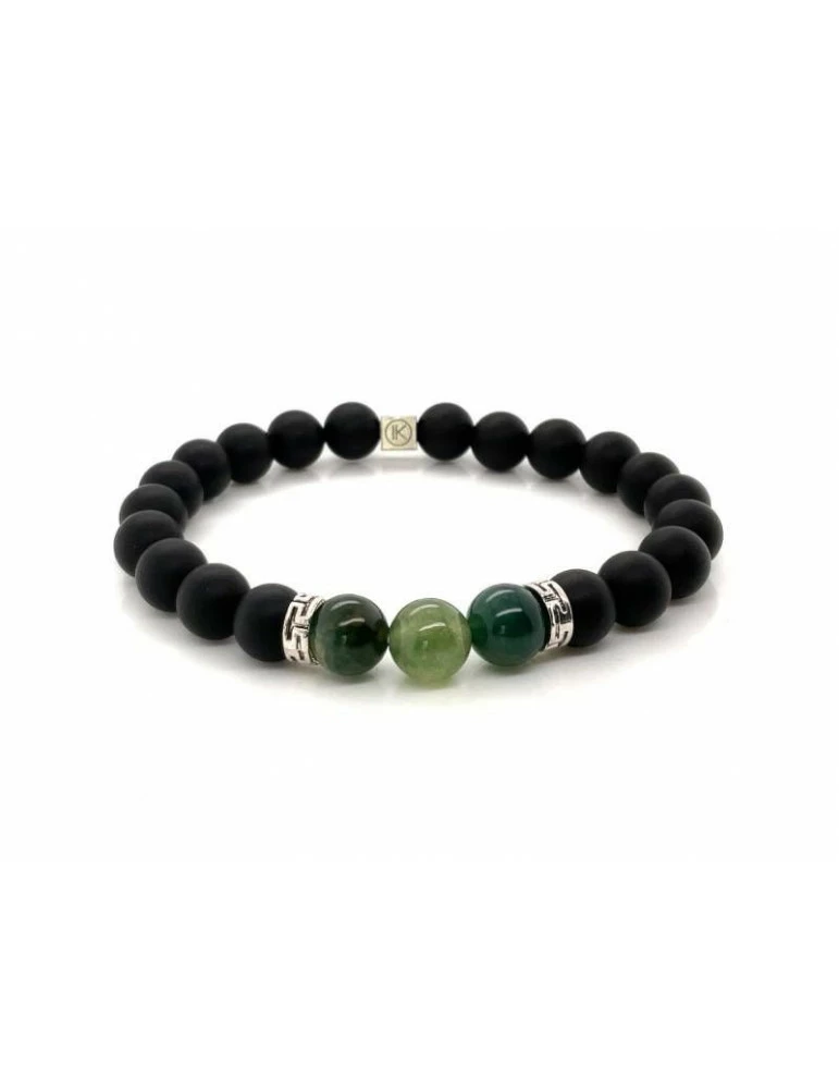 Bracelet homme agate mousse et noire 8mm et intercalaires en acier.