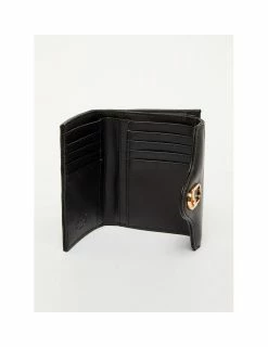 Ce portefeuille en synthétique noir effet cuir foulonné, affiche un logo métalique. Très pratique, il est doté de plusieurs poches et compartiments.