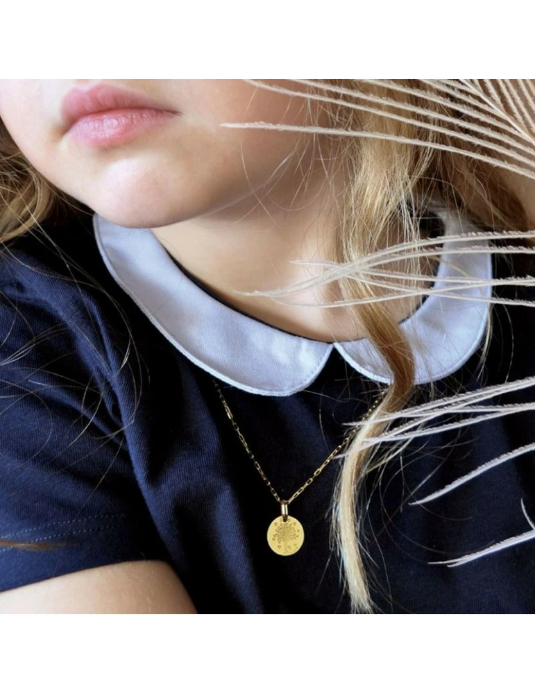 Magnifique arbre de vie sur médaille ronde, diamètre 14mm, poids 0.73gr, or jaune 18k. Fabriquée en France.