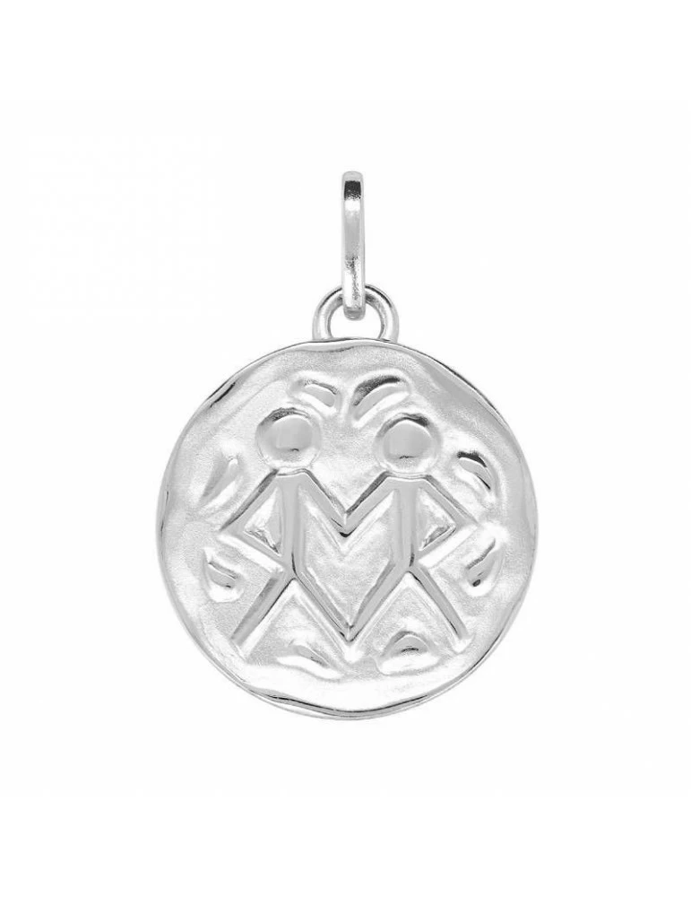 Signe Gémeaux sur une médaille ronde en argent 925/1000, diamètre 1.5cm, poids 1.75gr.