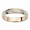 Alliance forme ruban avec liseret or rose excentré sur base d’or blanc palladié 750/1000. Anneau confort finition poli, épaisseur 1.5mm pour une largeur de 5mm. Poids moyen pour une taille 60, 6.7gr.