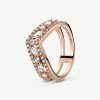 La bague en plaqué-or rose a un cœur intégré dans la forme chevron iconique. Délicatement empierré ce bijou est absolument irrésistible.