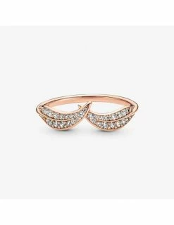La bague Feuilles Scintillantes se compose de deux feuilles courbées disposées l’une en face de l’autre. Elles sont décorées de rangées d’oxydes de zirconium.