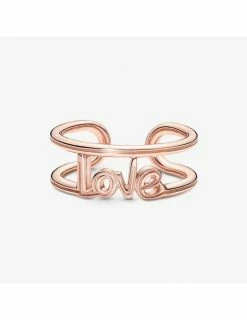Bague plaqué-or rose décorée du mot « Love » ( Amour ) en caractères manuscrits sur une ligne continue menant à l’anneau.