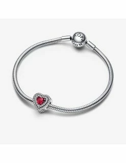 Ce charm Coeurs Nivelés Scintillant avec ces deux coeurs en crystal de synthèse rouge vif sertis en pavé de chaque côté de ce charm.
