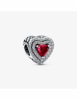 Ce charm Coeurs Nivelés Scintillant avec ces deux coeurs en crystal de synthèse rouge vif sertis en pavé de chaque côté de ce charm.