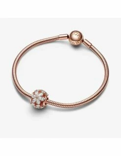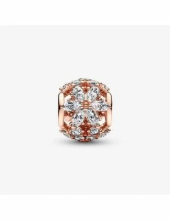 Ce charm doré à l’or rose 585/1000e est composé de quatre champs d’oxydes de zirconium incolores dessinant une forme sphérique. Une réinterprétation élégante de ces magnifiques formes observées dans la nature avec des détails évoquant des pétales et des feuilles.