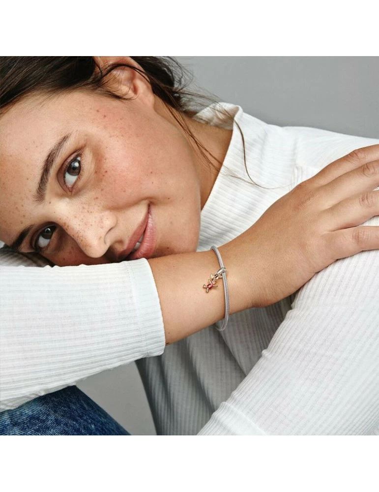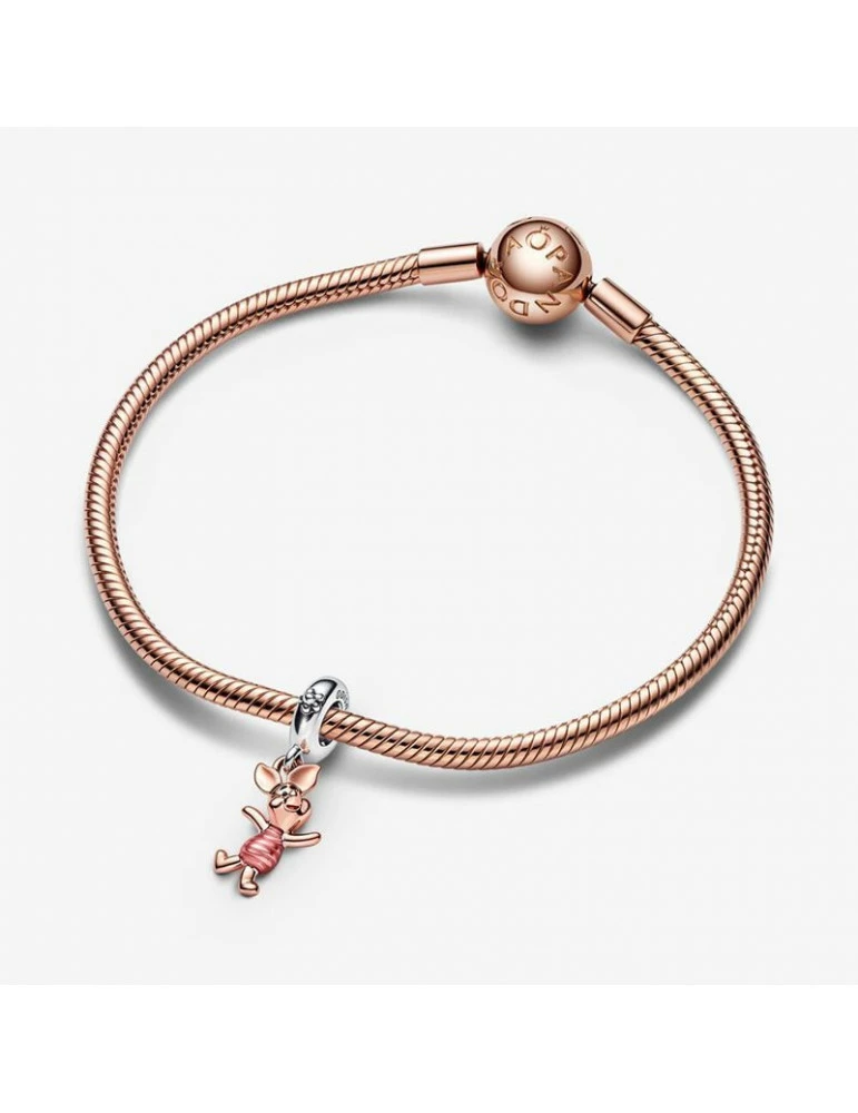 Ce charm représente Porcinet, un petit cochon de couleur rose, portant un pull rose. C’est un personnage de fiction célèbre appartenant à l’univers de Winnie l’ourson dans Disney. Il est confectionné en argent et en plaqué-doré rose et fini avec une résine façon émail.