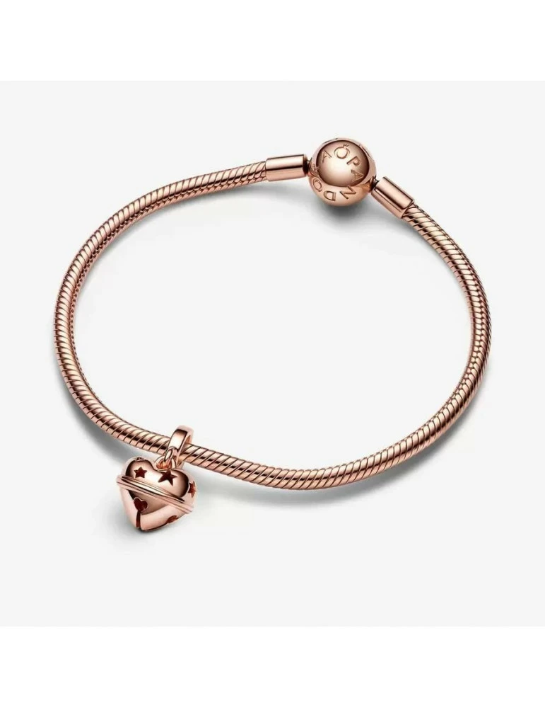 Revisitant un motif classique des fêtes de fin d’année à la façon de Pandora, ce charm cloche doré à l’or rose 585/1000e en forme de cœur et orné de détails ajourés en forme d’étoiles produira un doux tintement lorsque vous le secouerez. Ce bijou symbolise l’amour et ces précieux moments partagés à l’occasion des fêtes de fin d’année.