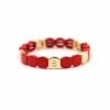 Ce charm Verre de Murano Rouge & Coeurs un noyau en Argent recouvert d’une feuille d’or.