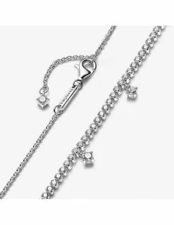 Ce collier en argent avec sa rangée continue de détails pavés et ses pierres scintillantes suspendues à intervalles réguliers le long du collier, va venir apportez une touche de lumière à votre tenue. Longueur du collier : 43 cm