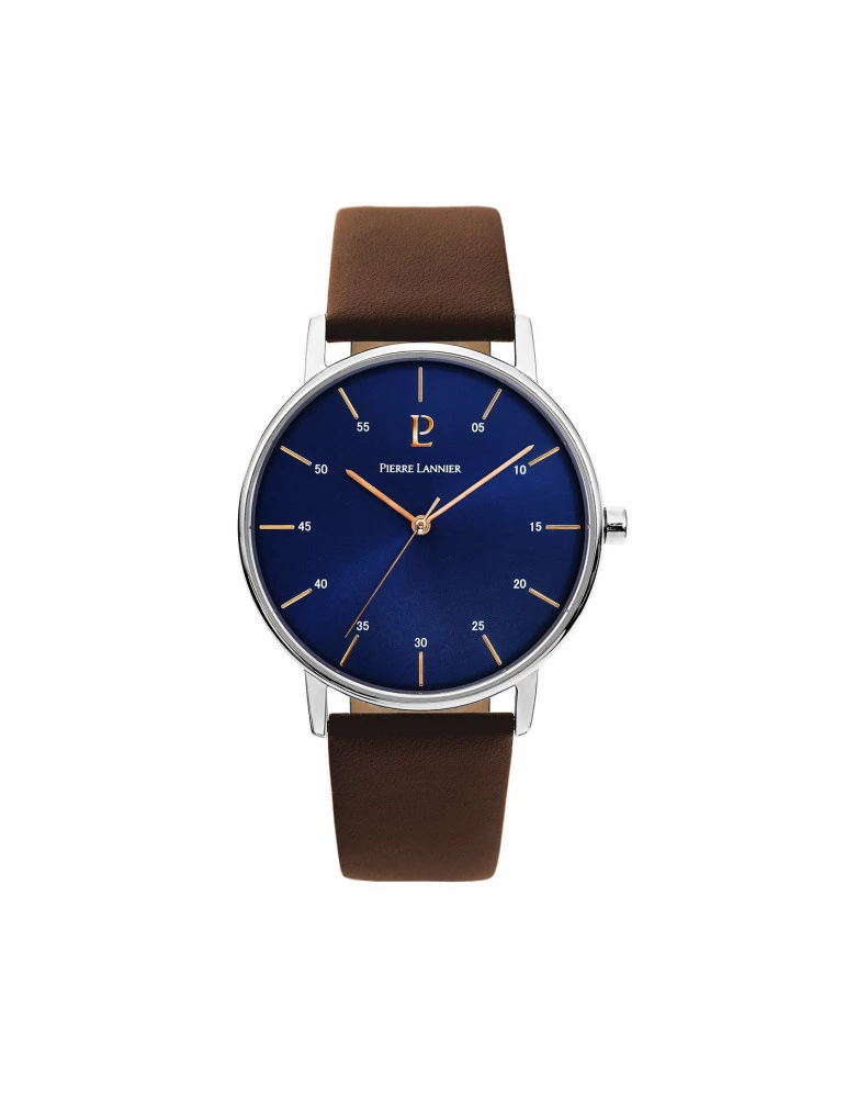 La montre est dotée d’un cadran bleu et d’un bracelet en cuir brun. Boîtier: 39mm.