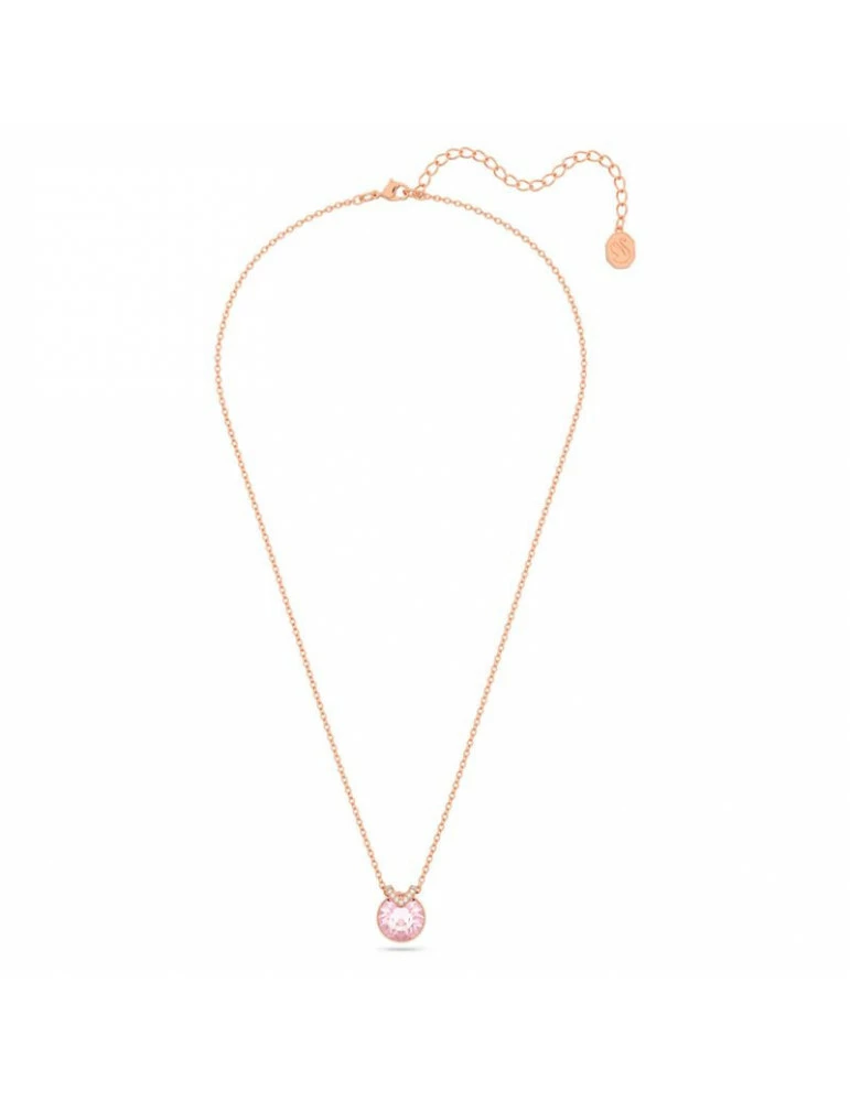Collier en metal rosé arbore un magnifique cristal rose accentué d’une touche de cristaux incolores. Longueur 38cm ajustable grâce à une chaînette.