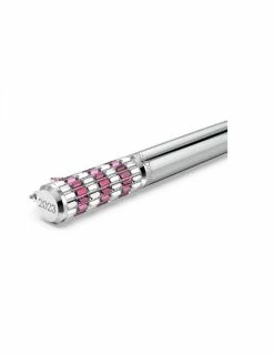 Ce stylo à bille célébration 2023 et son design élégant chromé qui présente des rangées rayonnantes de cristaux roses et incolores avec un charme en forme d’étoile. Le mot Swarovski et « 2023 » sont gravés à la pointe du stylo.