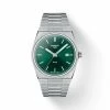 Le boîtier mesure 44 mm et est composé d’acier. Le cadran de la montre est de couleur bleue. Le bracelet est en cuir de couleur marron.